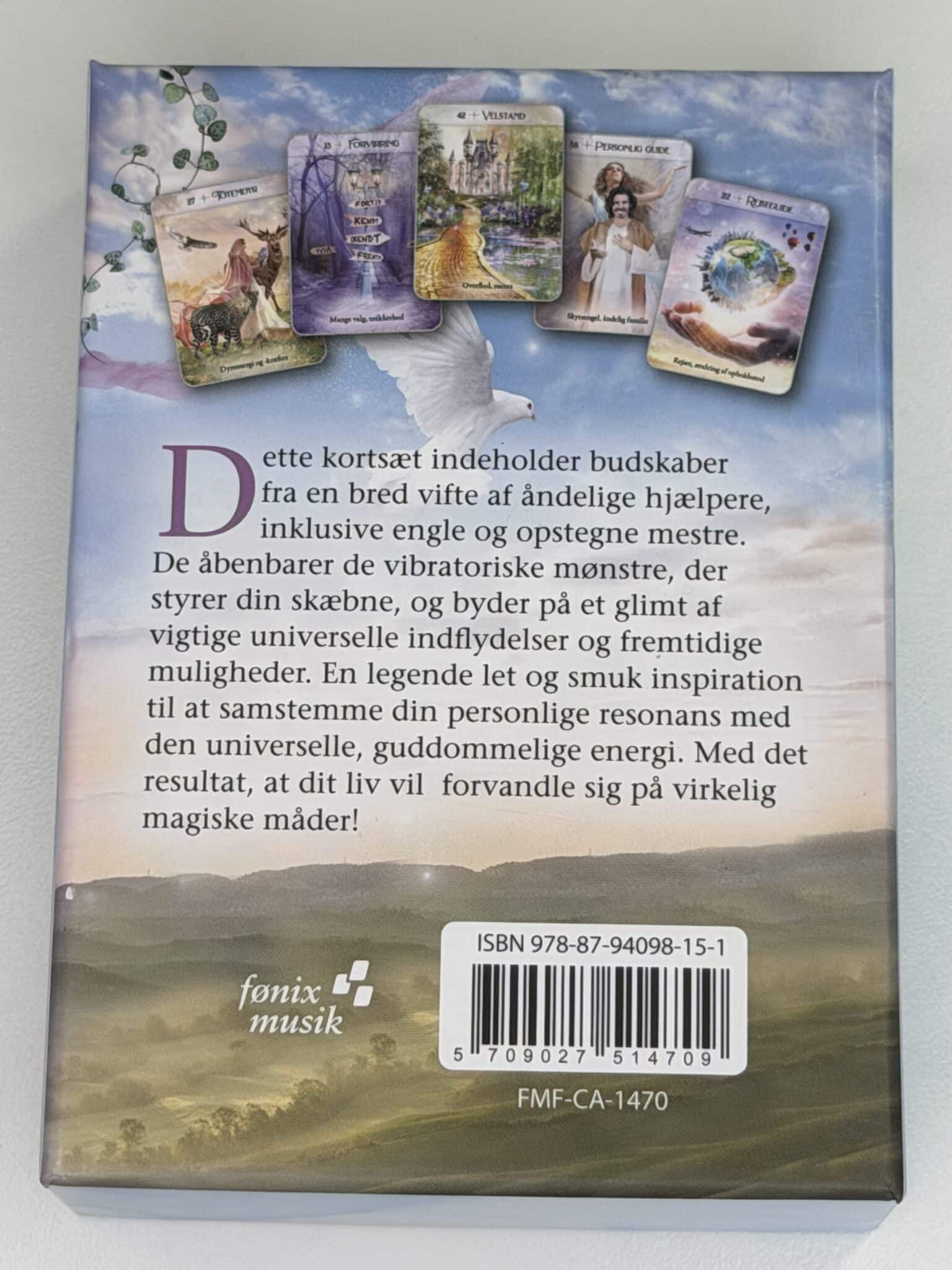 Dette kortsæt indeholder budskaber fra en bred vifte af åndelige hjælpere, inklusive engle og opstegne mestre. De åbenbarer de vibratoriske mønstre, der styrer din skæbne og byder på et glimt af vigtige universelle indflydelser og fremtidige muligheder. En legende let og smuk inspiration til at samstemme din personlige resonans med den universelle, guddommelige energi. Med det resultat, at dit liv vil forvandle sig på virkelig magiske måder.