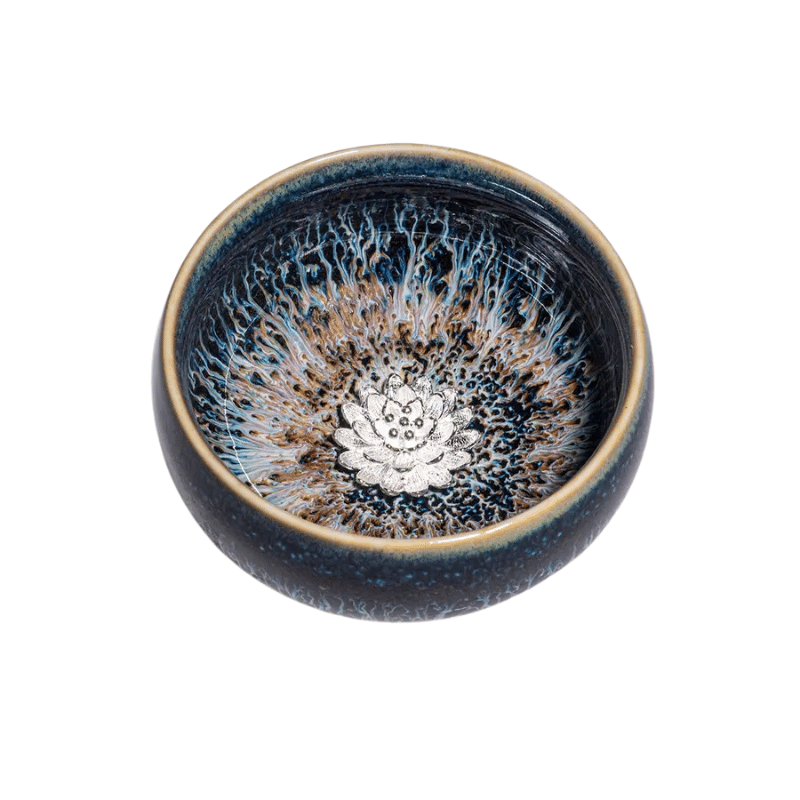 Forside / Shop / Cacao, Te & Tilbehør / Jianzhan Tenmoku tekop med sølvfugl, 50 ml